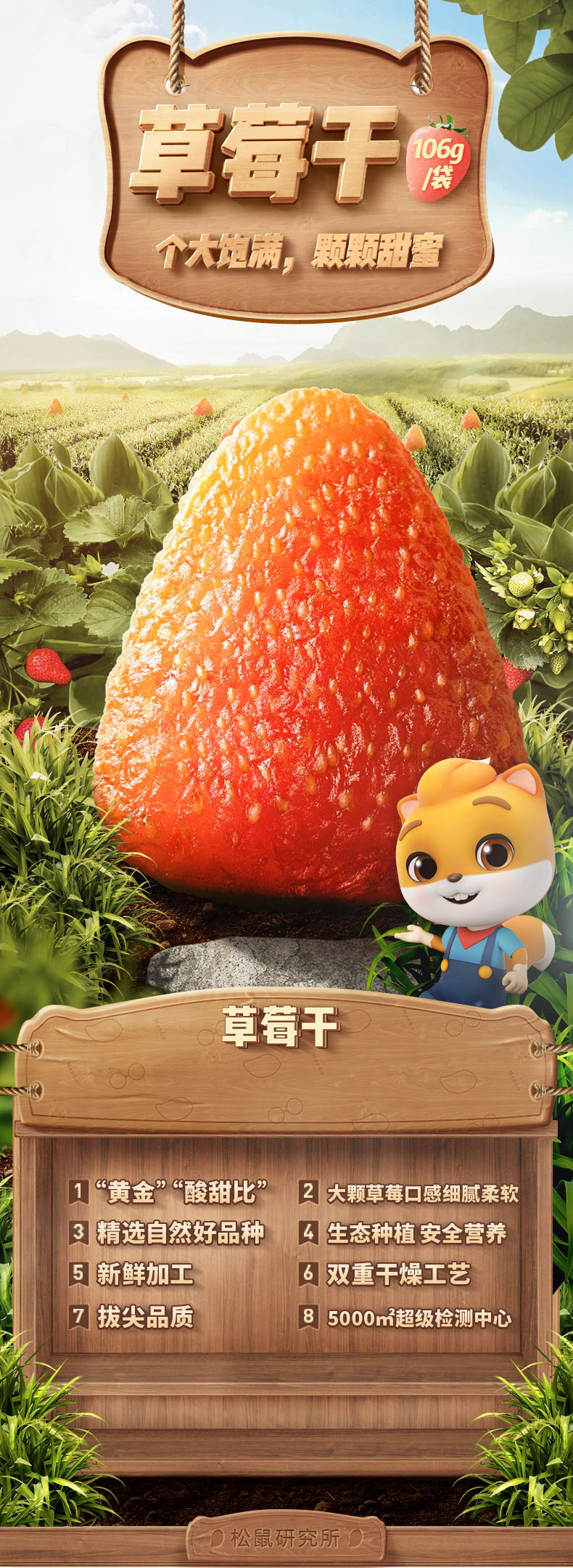 三只松鼠草莓干 蜜饯果干果脯办公室休闲零食水果干106g/袋