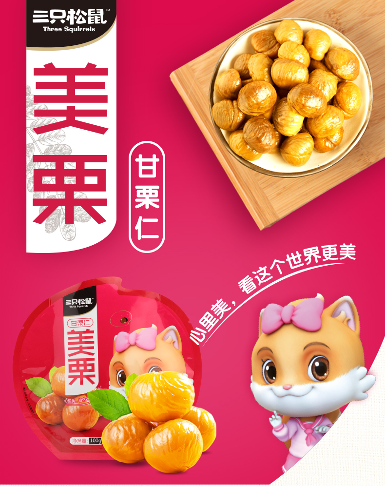 三只松鼠甘栗仁 坚果特产休闲零食栗子板栗100g/袋