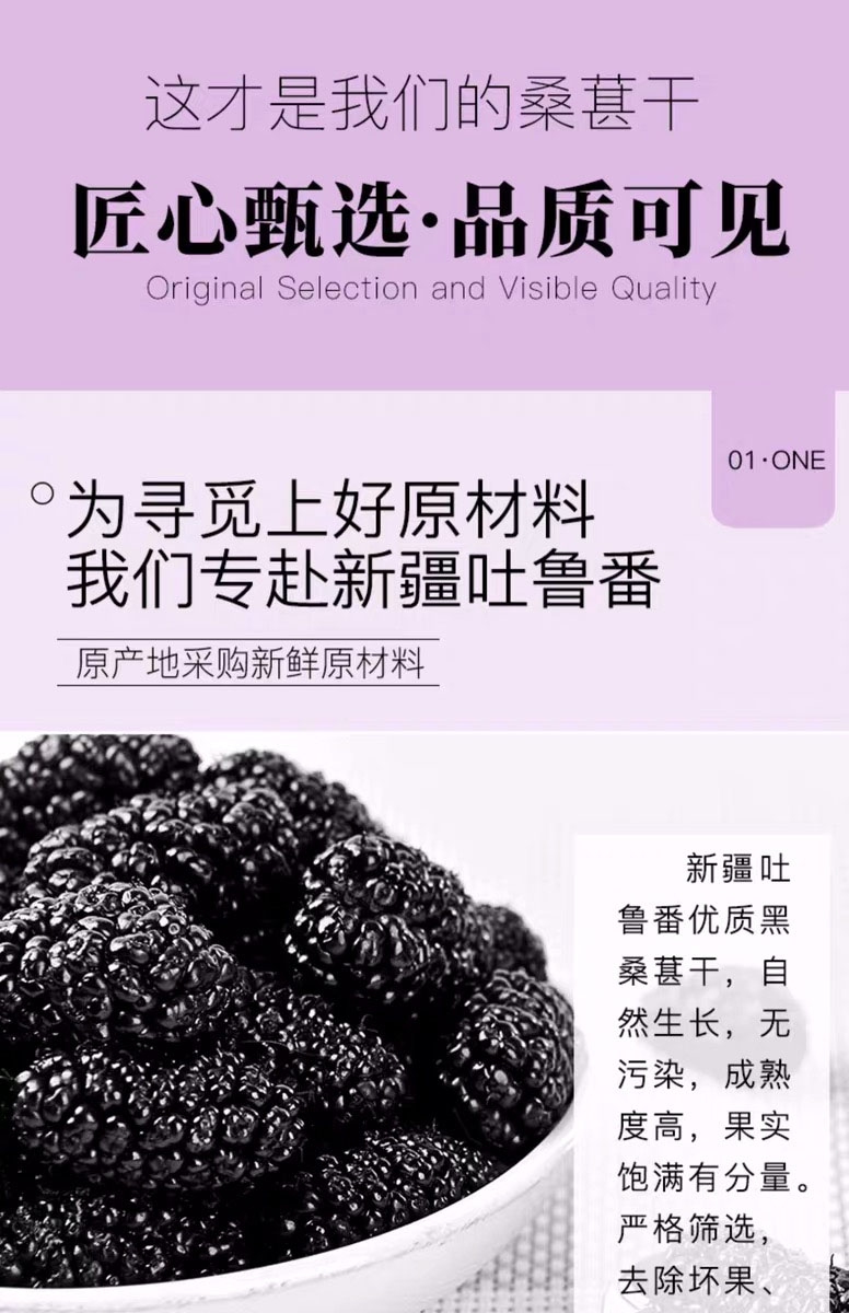 桑葚干2斤装 新疆黑桑椹干大果即食泡茶泡水泡酒桑葚干果新鲜大果 桑葚干1000g罐装